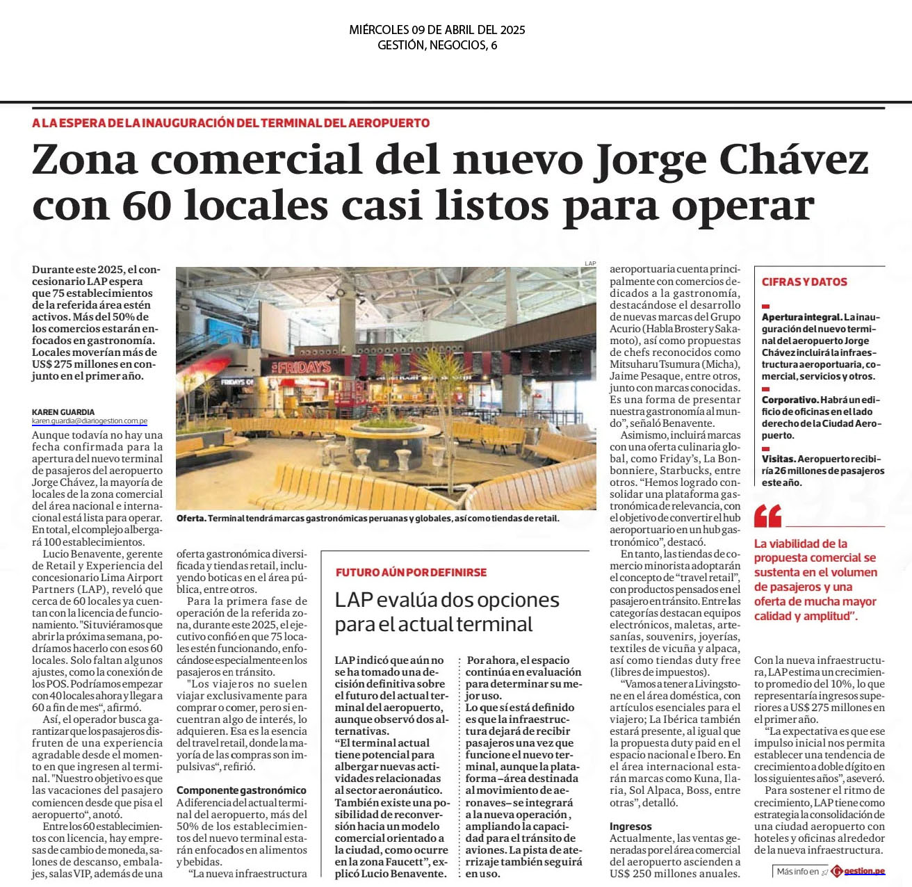 Durante este 2025, el concesionario LAP espera que 75 establecimientos de la referida área estén activos. Más del 50% de los comercios estarán enfocados en gastronomía. Locales moverían más de US$ 275 millones en conjunto el primero año.