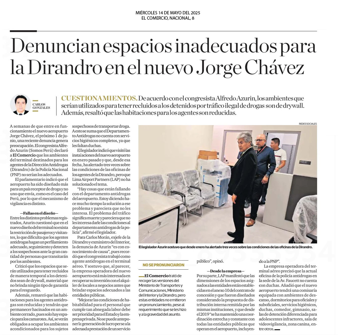 Denuncian espacios inadecuados para la Dirandro en el nuevo Jorge Chávez