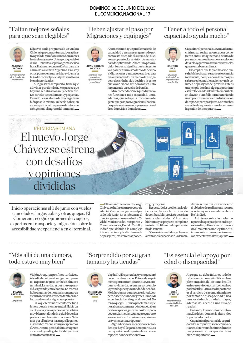 El flamante aeropuerto Jorge Chávez se halla en proceso de adaptación tras inaugurarse el pasado 1 de junio. En conferencia, el director general de Aeronáutica Civil del Ministerio de Transportes y Comunicaciones, Donald Castillo, indicó que, debido a la compleja infraestructura y la alta demanda de pasajeros, existen cosas por corregir y mejorar. Profesionales dan su opinión al respecto.