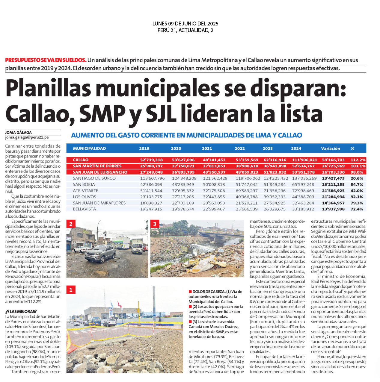 Planillas municipales se disparan: Callao, SMP y SJL lideran la lista