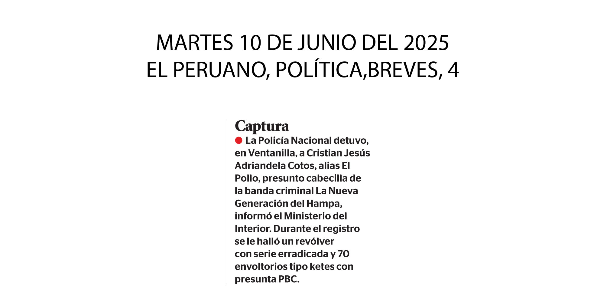 El Peruano, Política, Breves, 4